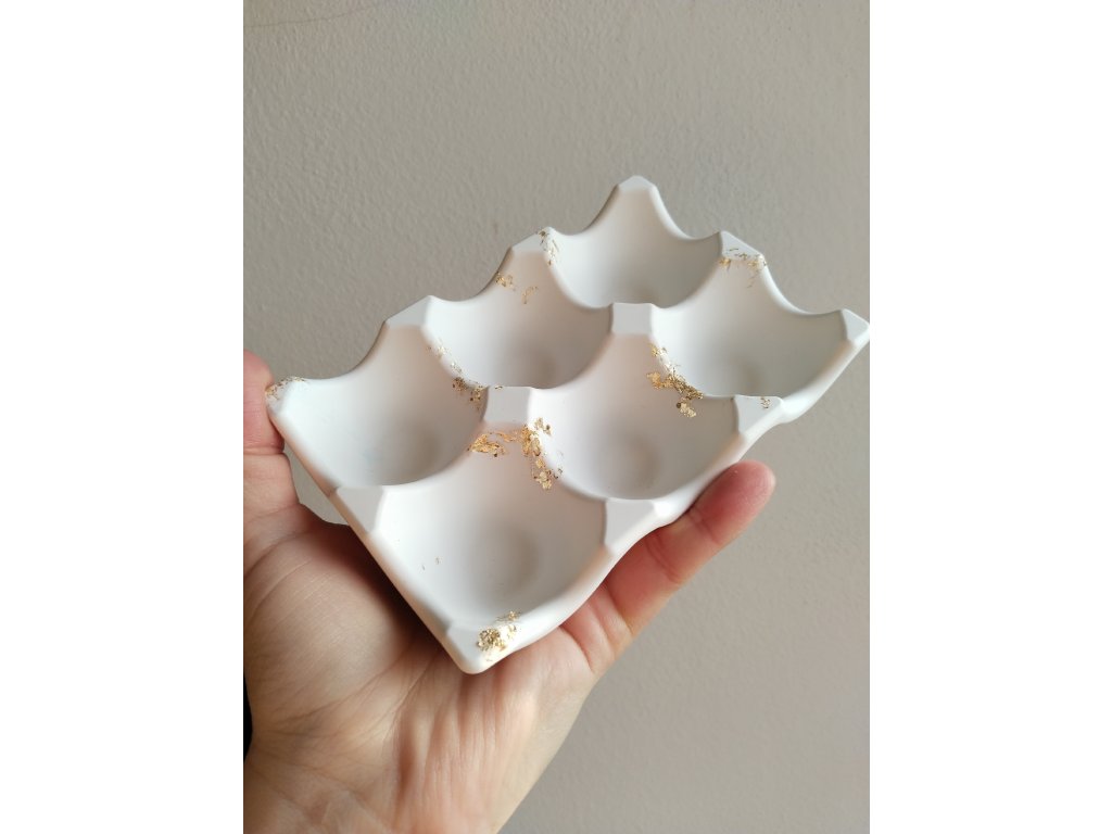 Ručně odlévané hnízdo na vajíčka z umělé keramiky s jemnými zlatými detaily. Stylový prvek pro velikonoční i celoroční dekoraci 🪺